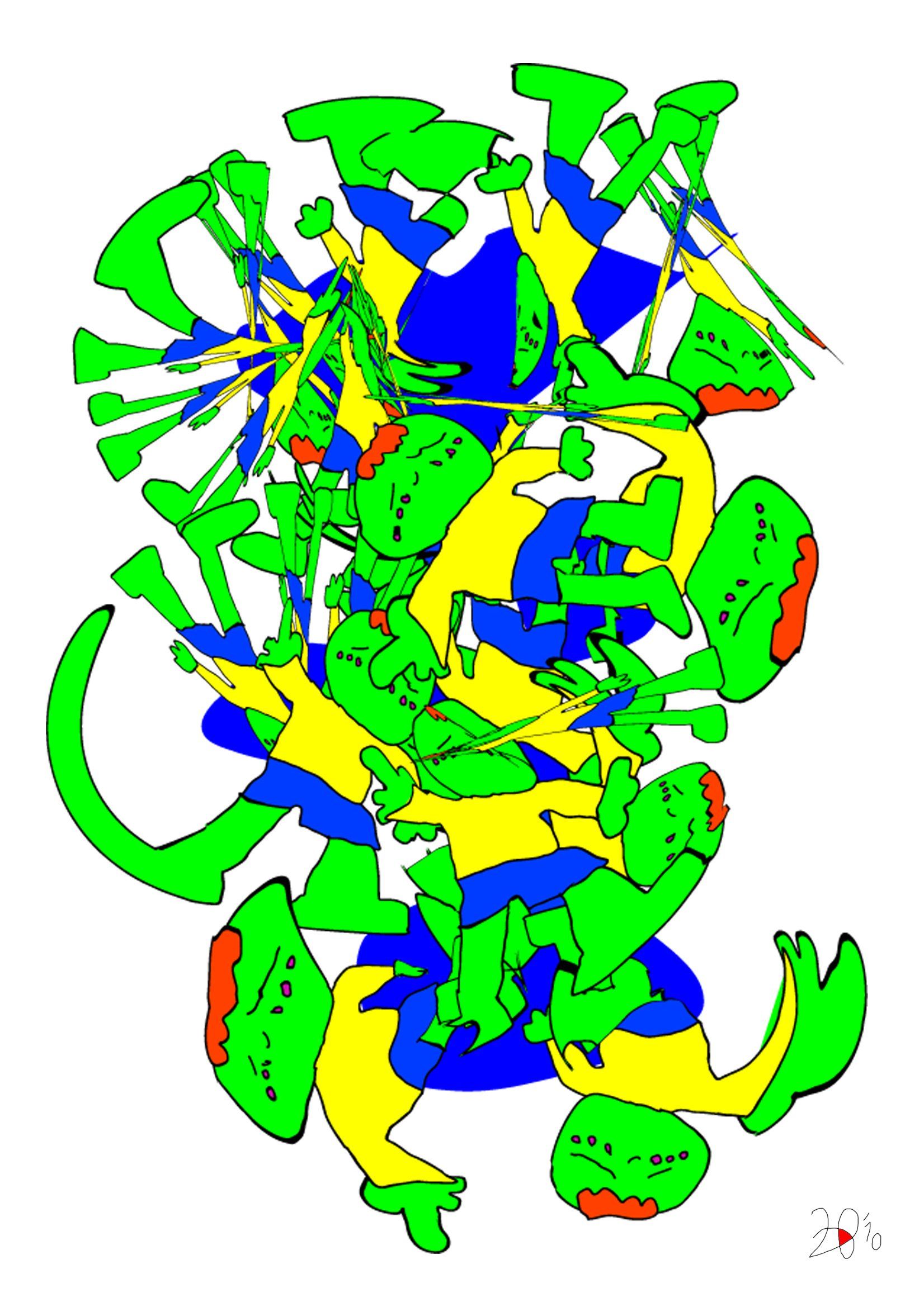 Nasen-Stempel Bilder - Mit der Nasenspitze und Tusche auf 80 g/m2 Papier gestempelt, eingescannt